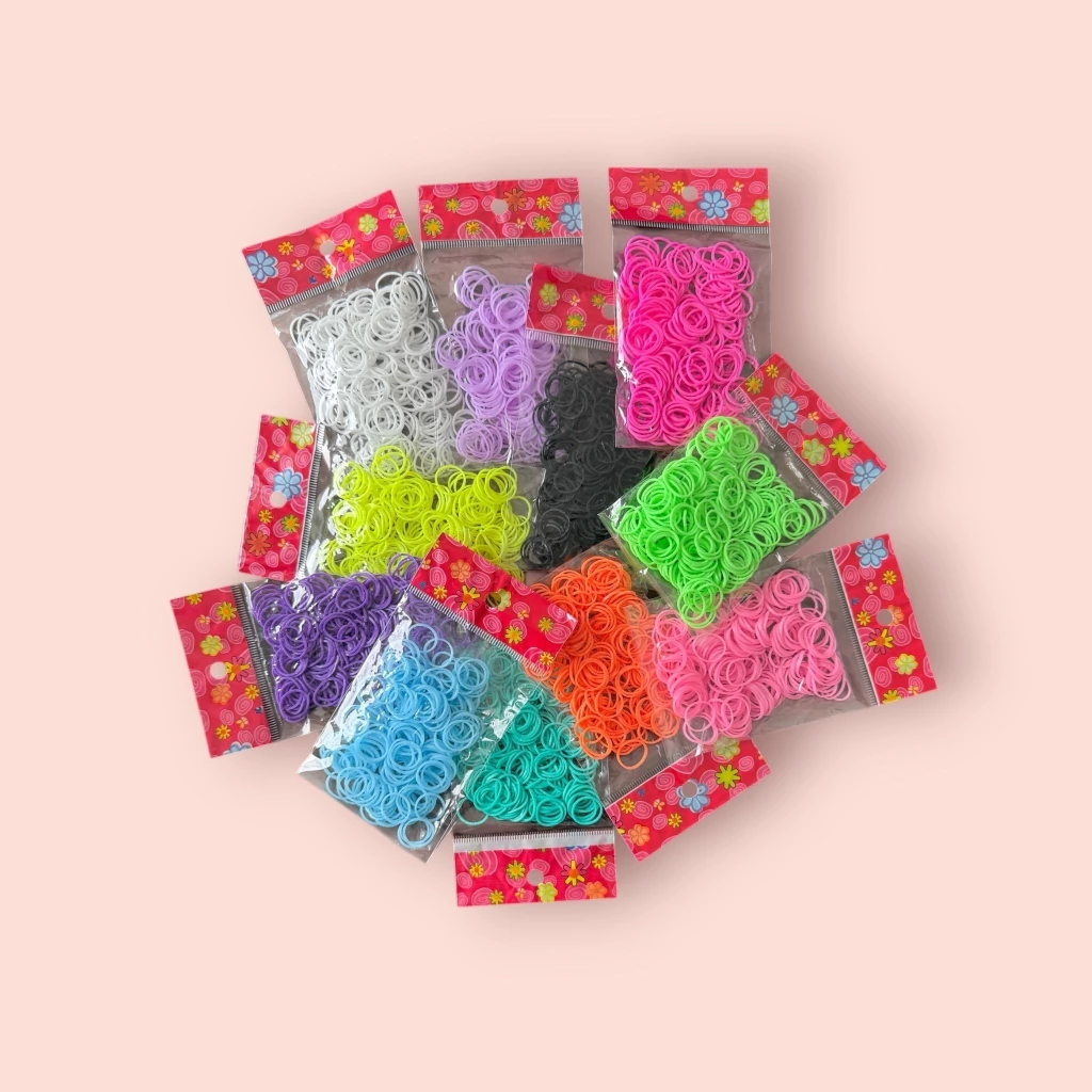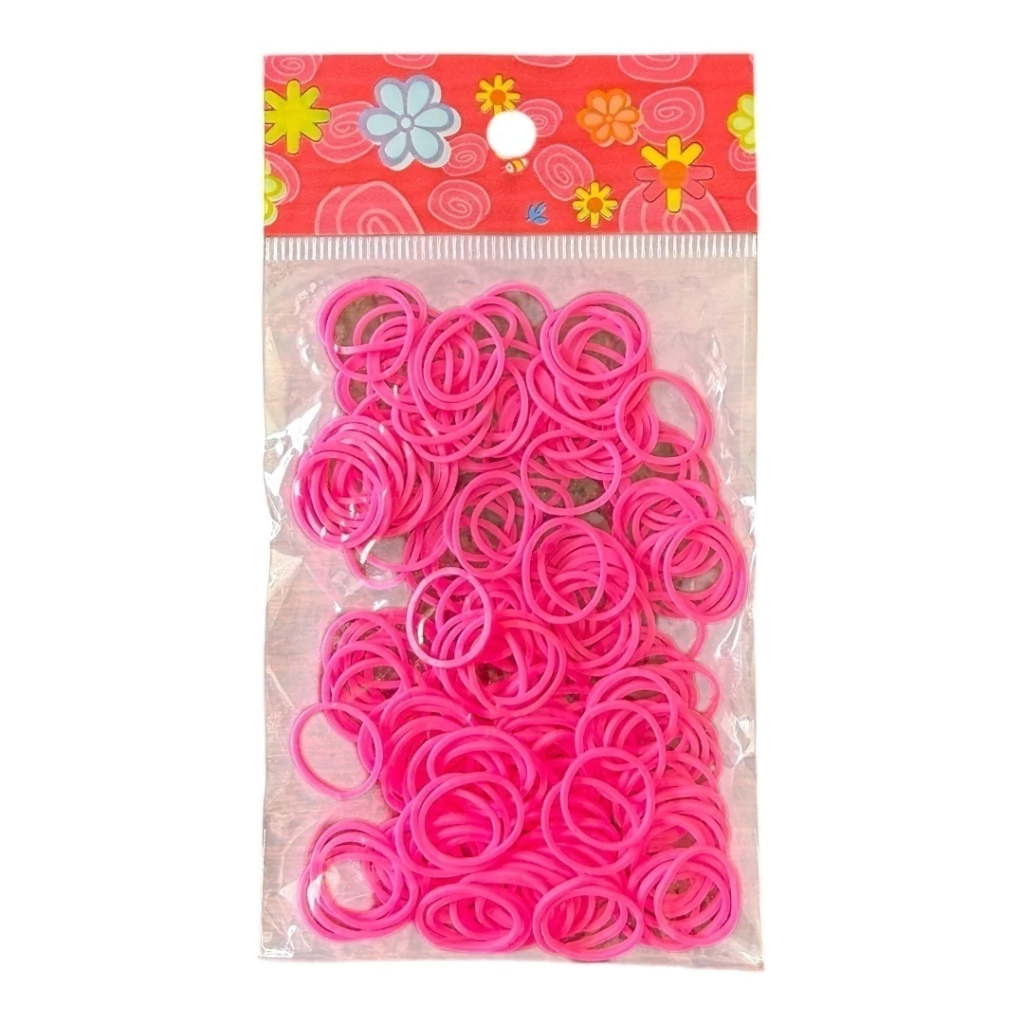 Se trata de una bolsita plástica con 200 banditas o gomitas para hacer pulseras Loom Bands de un solo color.